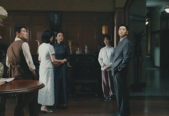 林斯允的新型旗袍、守旧烫发,程敖的西装三件套,规复了民国上海滩后生男女的风仪。
