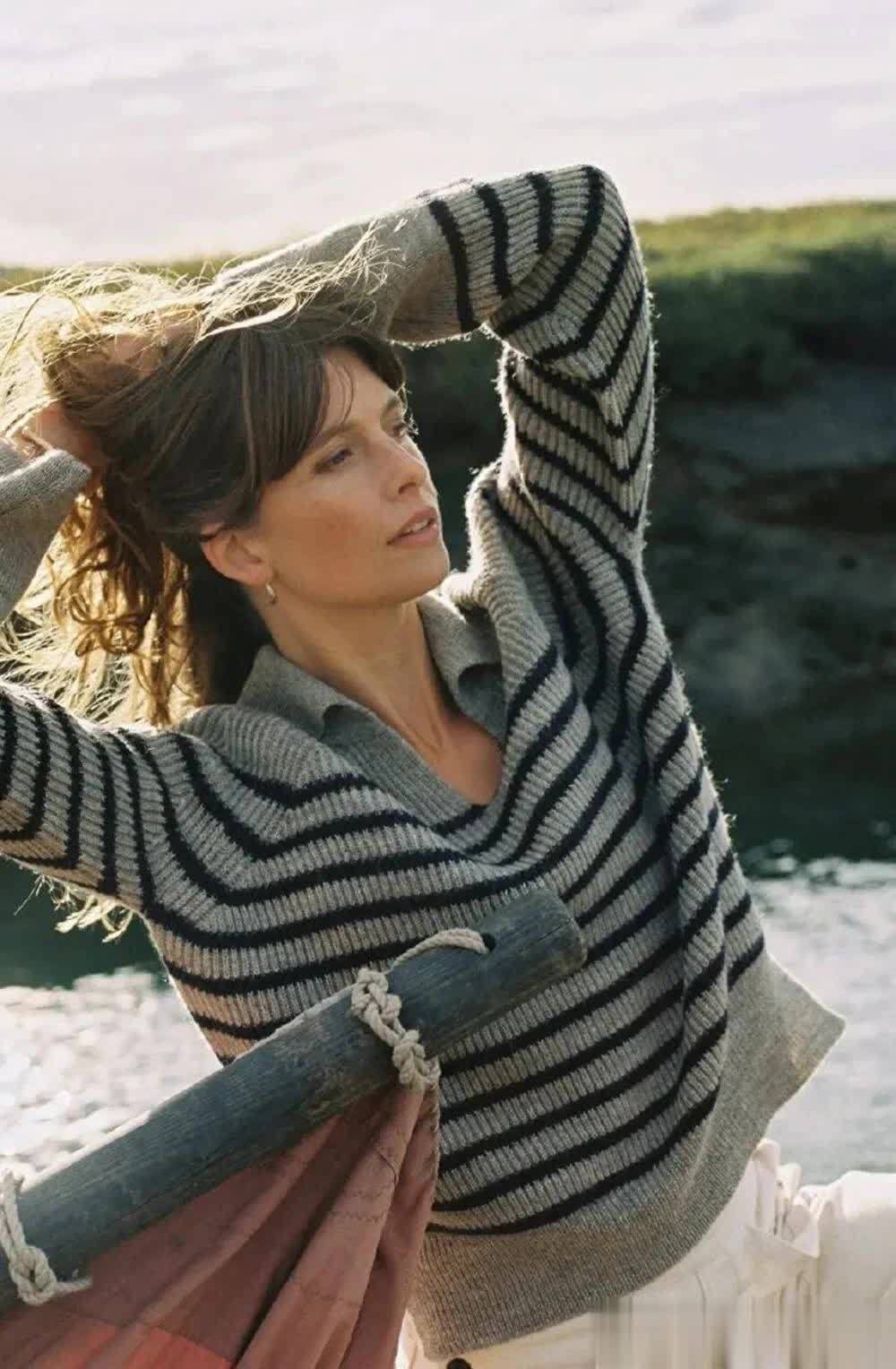 如若你很可爱大肆大气又大概利落的穿搭作风,不妨试试经典条纹毛衣的搭配。