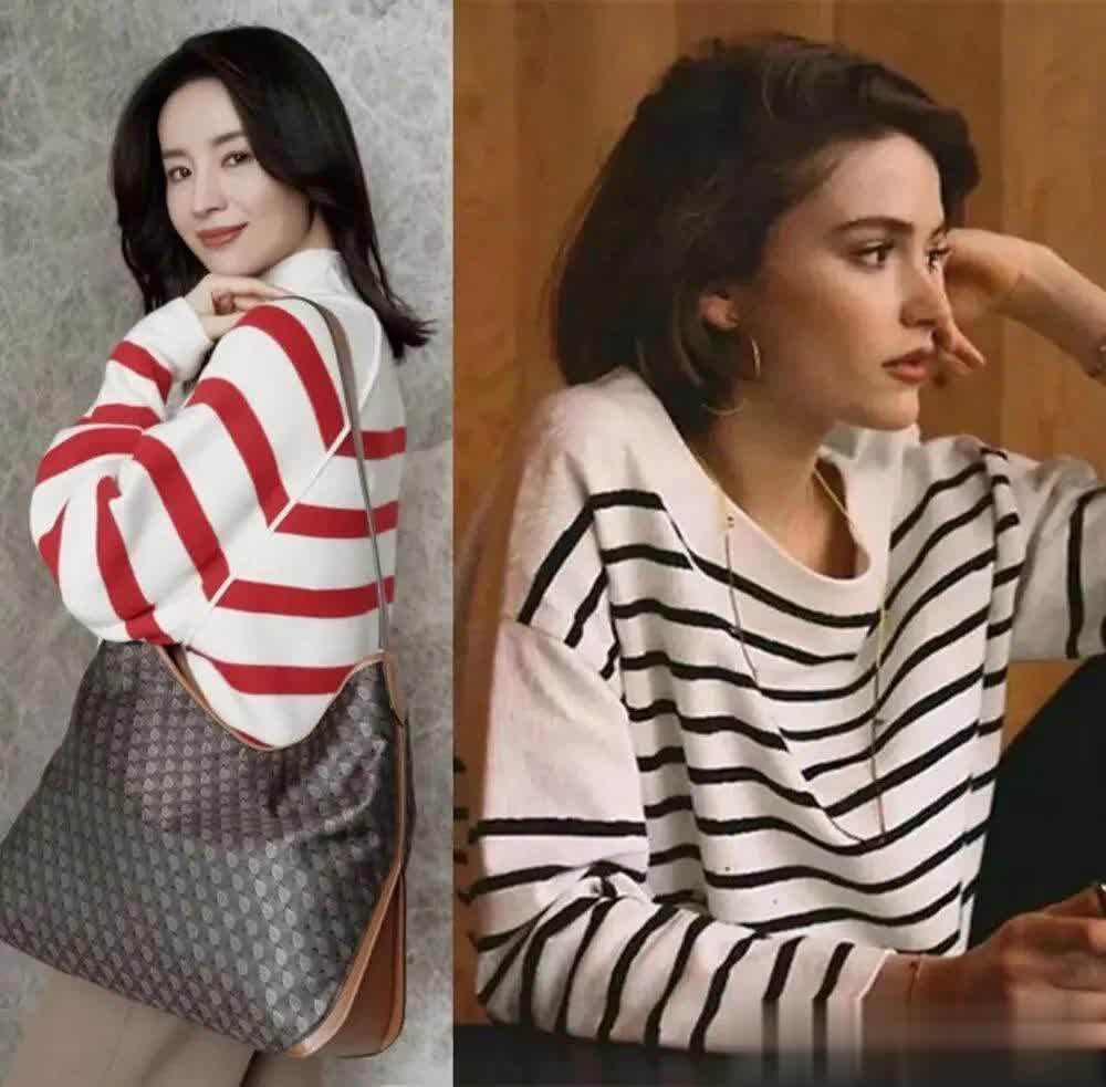 大好意思女董洁穿的这件红白条纹毛衣,遴选了经典的撞色系组合,看起来会更新鲜减龄。