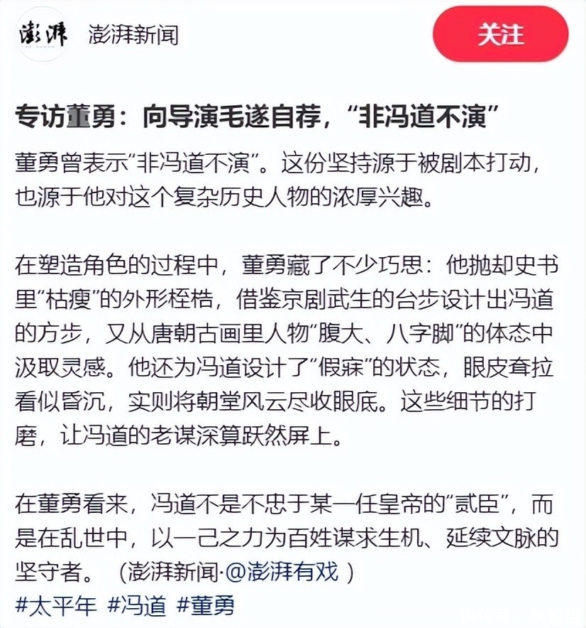 参考贵府开始:汹涌新闻:专访董勇:向导演毛遂自荐,“非冯说念不演”