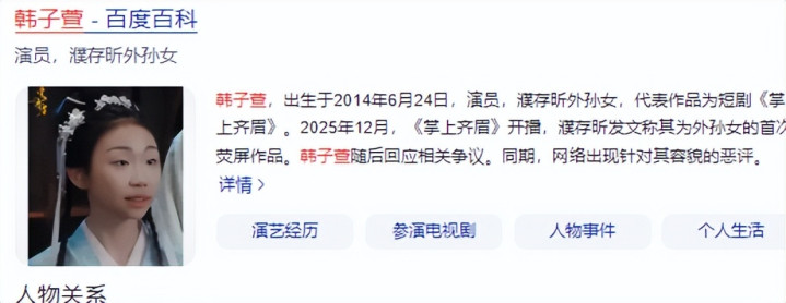 在这6位星二代里,韩子萱是年龄最小的,却亦然争议最大的。