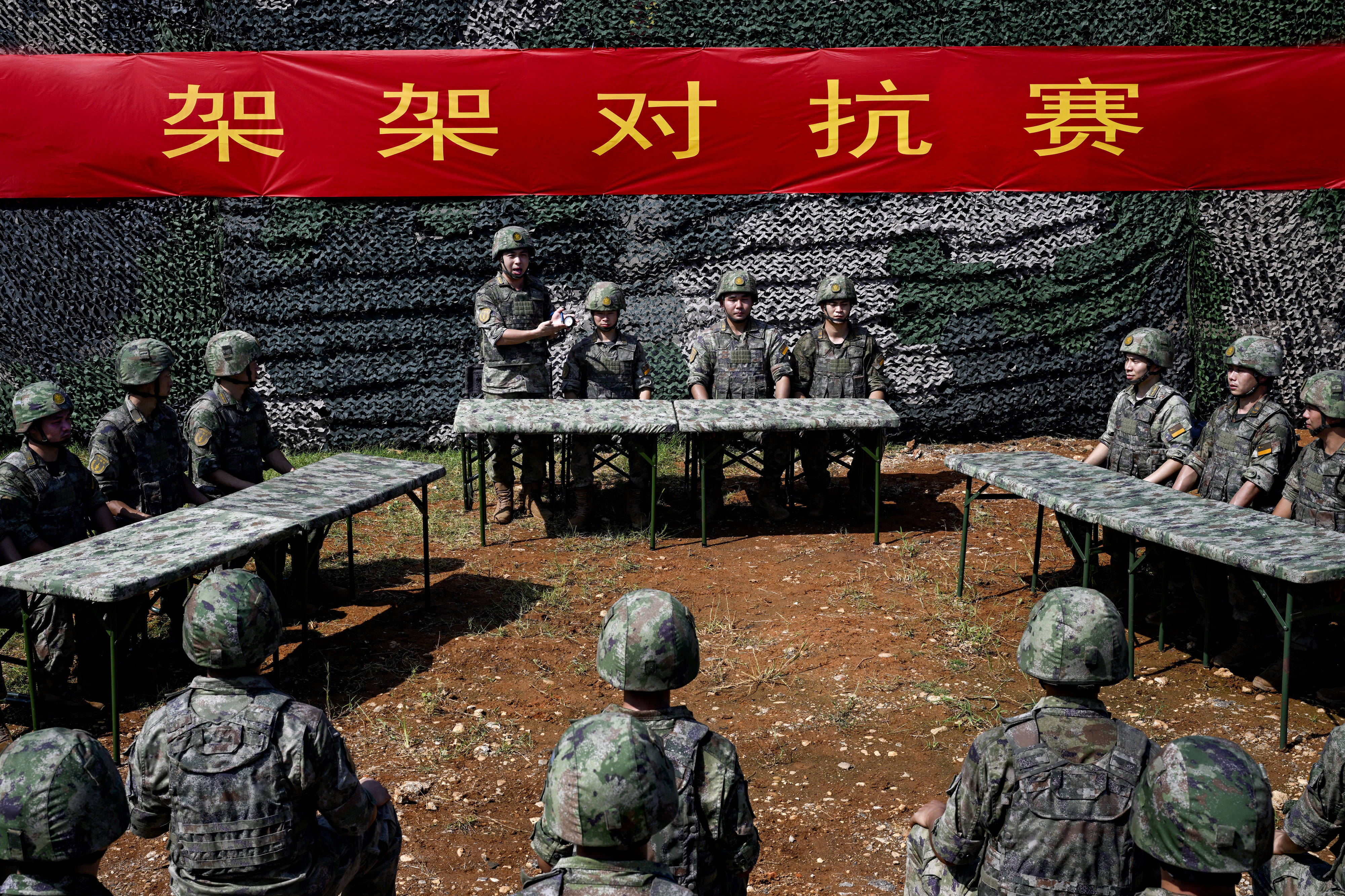 火箭军某旅放射二营针对老师难题组织官兵复盘参议(而已相片)。新华社发(刘明松摄)