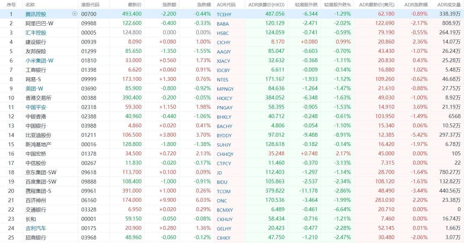 智通财经APP获悉,周五,好意思股三大指数集体收跌。恒生指数ADR下落,按比例盘算,收报24756.87点,较香港收市跌195.01点或0.78%。 大型蓝筹股大王人下落,汇丰控股收报124.059港...